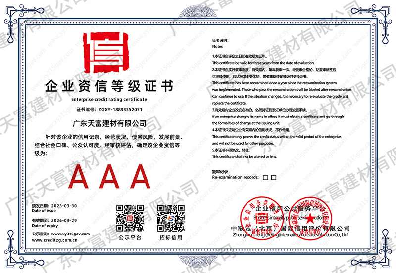 企業(yè)信用評(píng)價(jià)AAA級(jí)信用企業(yè)